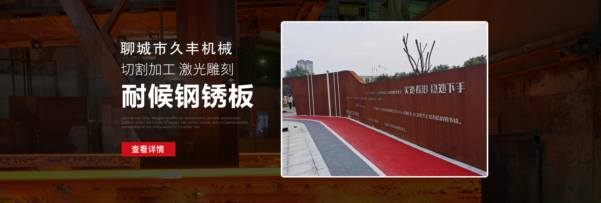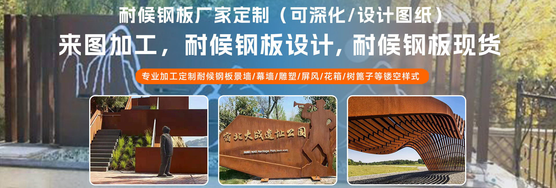 聊城市久豐機械有限公司主營:耐候板,耐候鋼板,耐候銹鋼板,考登鋼板,235NH耐候板,345NH耐候板,355NH耐候板,09CUPCrNi-A耐候鋼板,耐候銹蝕鋼板,耐候紅銹鋼板,耐候幕墻銹鋼板,耐候鋼板生銹,耐候鋼板生銹藥水,鋼板生銹藥水,鋼板發銹劑,耐候銹鋼板鍍膜固化劑等產品應用包括幕墻、鏤空幕墻、火爐、樹池、園林立體雕塑、鏤空小動物、水池、橋梁等。 20世紀初,國外一些前衛的藝術家將鋼材用于雕塑創作。由于鋼鐵銹蝕是材料自身的一種自然狀態,十分符合藝術表達的真實性原則,久而久之,銹蝕鋼材成為現代景觀造型藝術設計的材料之一。 銹蝕鋼板會隨著時間的變化而發生變化,其色彩明度和飽和度比一般的構筑物材料要高,因此在園林…